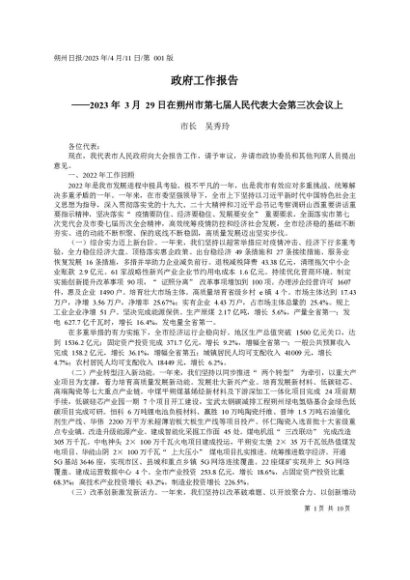 / 署名文章:2023.04.11市长吴秀玲:政府工作报告