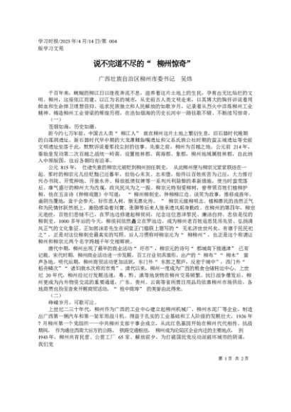署名文章:2023.04.14广西壮族自治区柳州市委书记吴炜:说不完道不尽的柳州惊奇