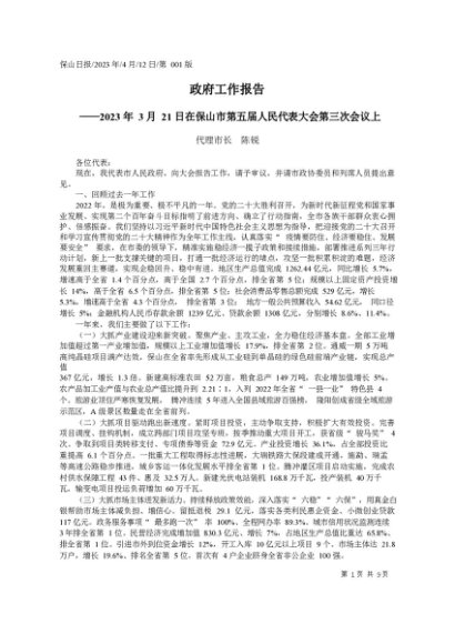 / 署名文章:2023.04.12代理市长陈锐:政府工作报告