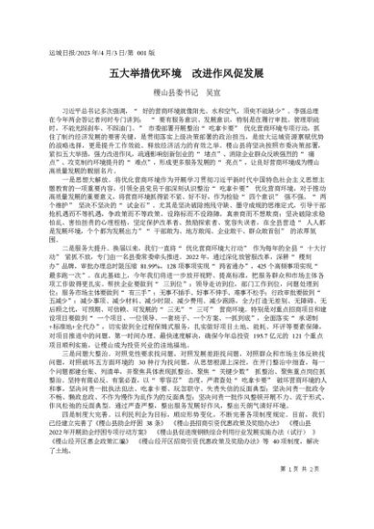 署名文章:2023.04.03稷山县委书记吴宣:五大举措优环境改进作风促发展