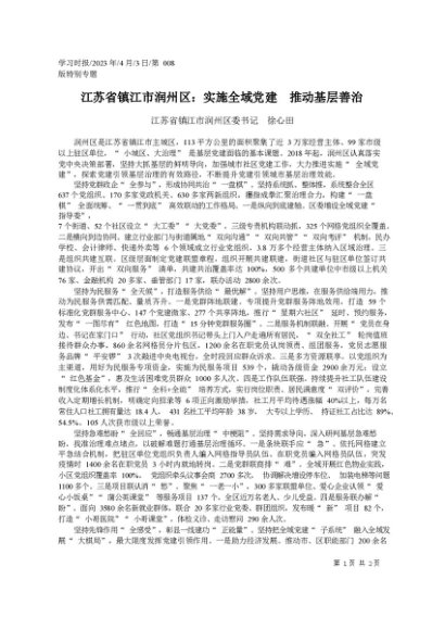 署名文章:2023.04.03江苏省镇江市润州区委书记徐心田:江苏省镇江市润州区:实施全域党建推动基层善治