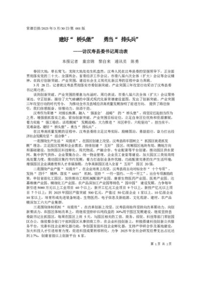 / 署名文章:2023.03.30本报记者童宗锦黎自来通讯员陈勇:建好桥头堡勇当排头兵