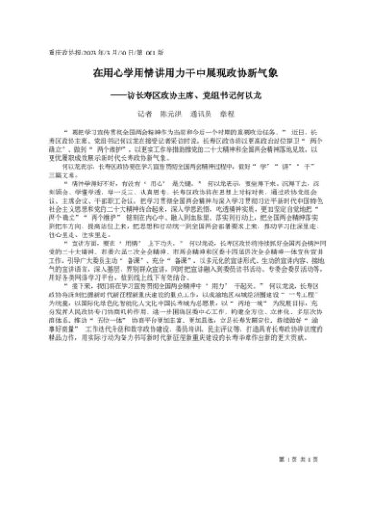 / 署名文章:2023.03.30记者陈元洪通讯员章程:在用心学用情讲用力干中展现政协新气象