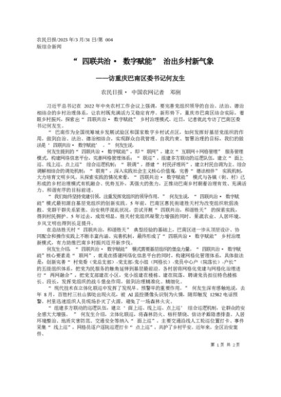 / 署名文章:2023.03.31农民日报·中国农网记者邓俐:四联共治·数字赋能治出乡村新气象