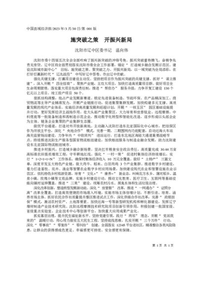 署名文章:2023.03.30沈阳市辽中区委书记温向伟:施突破之策开振兴新局