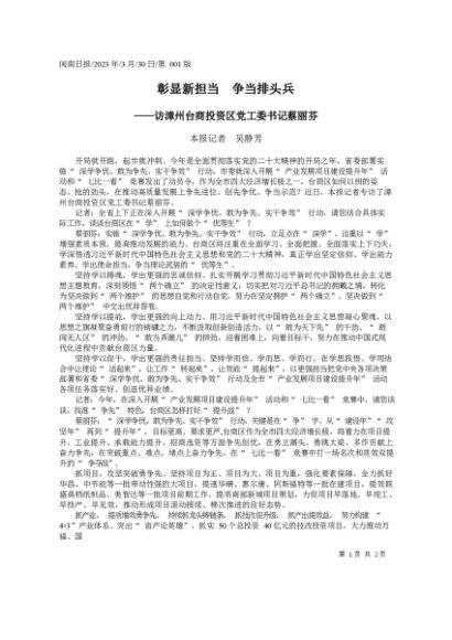 / 署名文章:2023.03.30本报记者吴静芳:彰显新担当争当排头兵