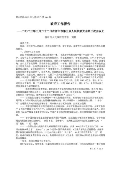 / 署名文章:2023.03.27晋中市人民政府代市长刘星:政府工作报告