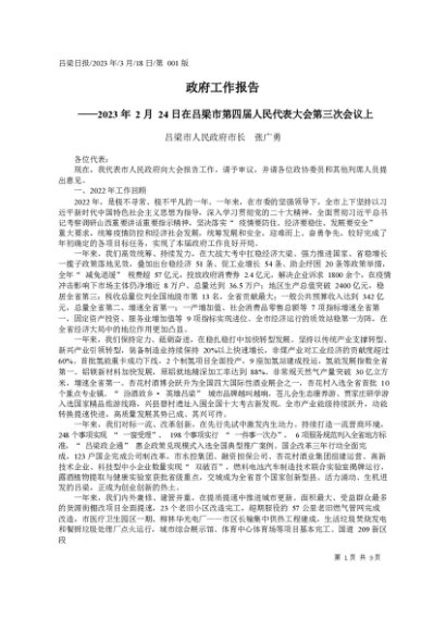 / 署名文章:2023.03.18吕梁市人民政府市长张广勇:政府工作报告