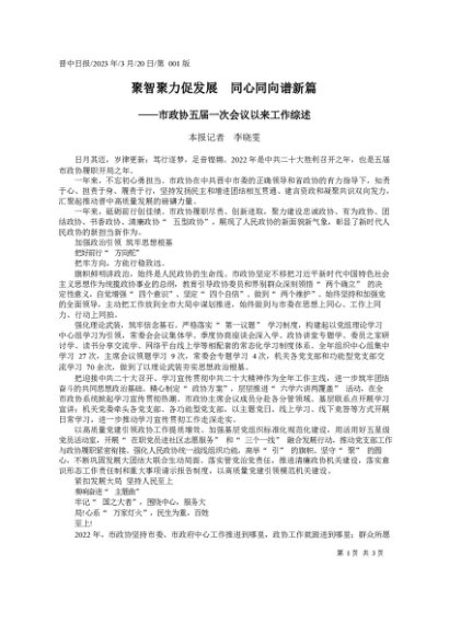 / 署名文章:2023.03.20本报记者李晓雯:聚智聚力促发展同心同向谱新篇