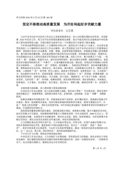 / 署名文章:2023.03.22河北省省长王正谱:坚定不移推动高质量发展为开好局起好步贡献力量