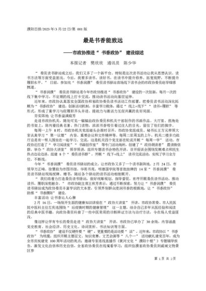 署名文章:2023.03.22本报记者樊欣欣通讯员陈少华:最是书香能致远