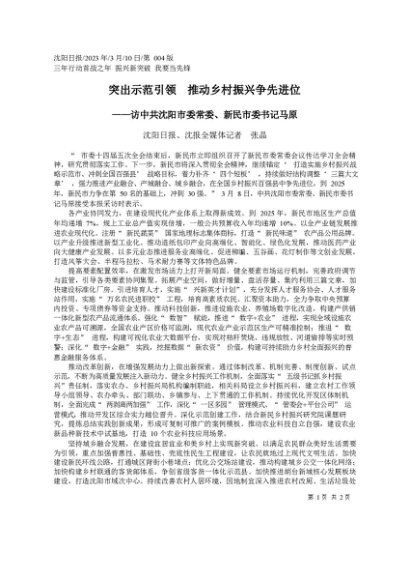 / 署名文章:2023.03.10沈阳日报、沈报全媒体记者张晶:突出示范引领推动乡村振兴争先进位