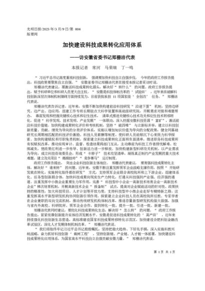 署名文章:2023.03.09本报记者常河马荣瑞丁一鸣:加快建设科技成果转化应用体系