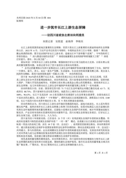 / 署名文章:2023.03.10本报记者安胜蓝俞海萍李晓东:进一步筑牢长江上游生态屏障