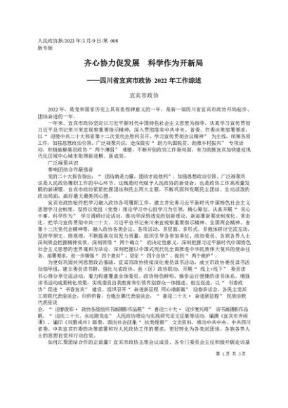 署名文章:2023.03.09宜宾市政协:齐心协力促发展科学作为开新局