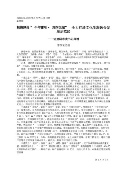 署名文章:2023.03.07本报采访组:加快建设千年建州·理学名城全力打造文化生态融合发展示范区