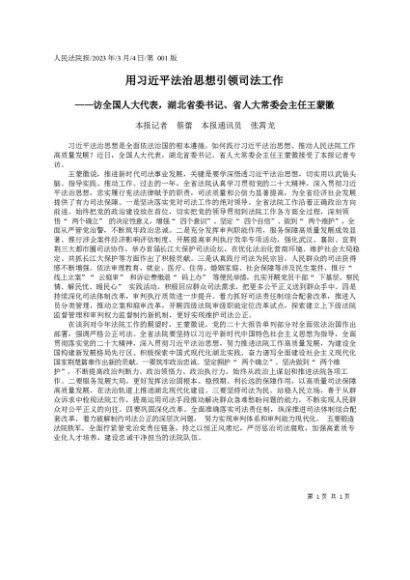 / 署名文章:2023.03.04本报记者蔡蕾本报通讯员张霄龙:用习近平法治思想引领司法工作