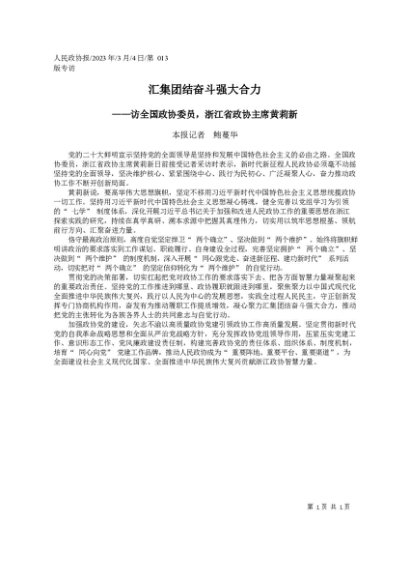 署名文章:2023.03.04本报记者鲍蔓华:汇集团结奋斗强大合力