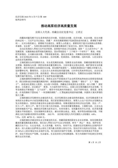 署名文章:2023.03.07全国人大代表、西藏自治区党委书记王君正:推动高原经济高质量发展