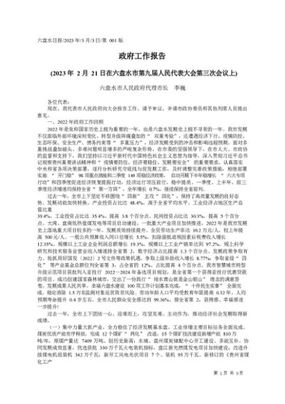 / 署名文章:2023.03.03六盘水市人民政府代理市长李巍:政府工作报告
