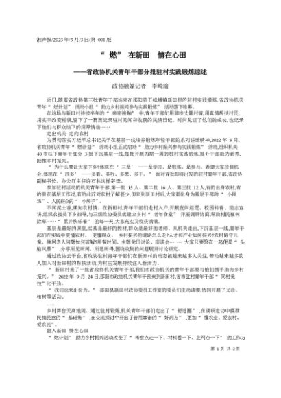 署名文章:2023.03.03政协融媒记者李崎瑜:燃在新田情在心田