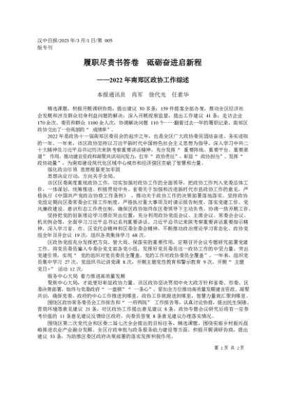 / 署名文章:2023.03.01本报通讯员肖军徐代光任素华:履职尽责书答卷砥砺奋进启新程