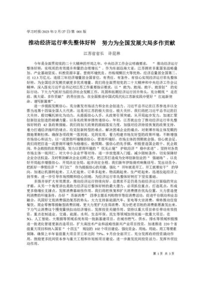 / 署名文章:2023.02.27江苏省省长许昆林:推动经济运行率先整体好转努力为全国发展大局多作贡献