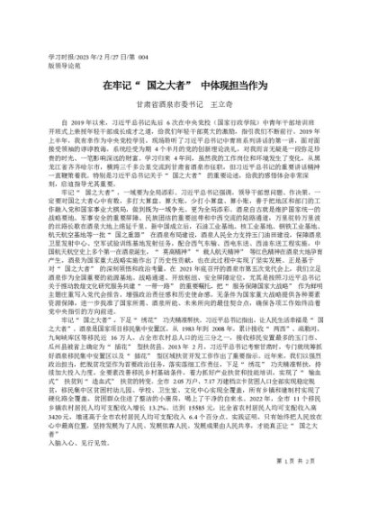 / 署名文章:2023.02.27甘肃省酒泉市委书记王立奇:在牢记国之大者中体现担当作为
