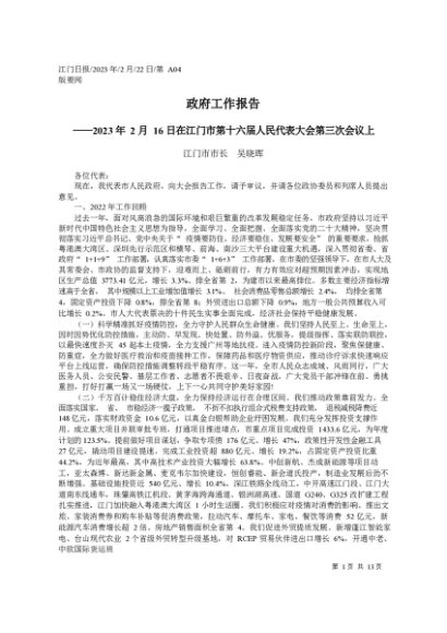 署名文章:2023.02.22江门市市长吴晓晖:政府工作报告