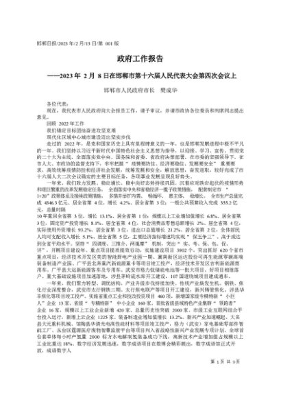 / 署名文章:2023.02.13邯郸市人民政府市长樊成华:政府工作报告