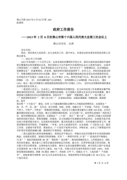/ 署名文章:2023.02.16佛山市市长白涛:政府工作报告