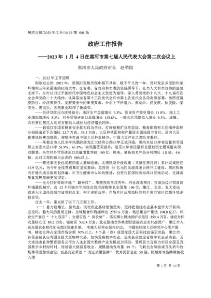 / 署名文章:2023.02.10黑河市人民政府市长赵荣国:政府工作报告