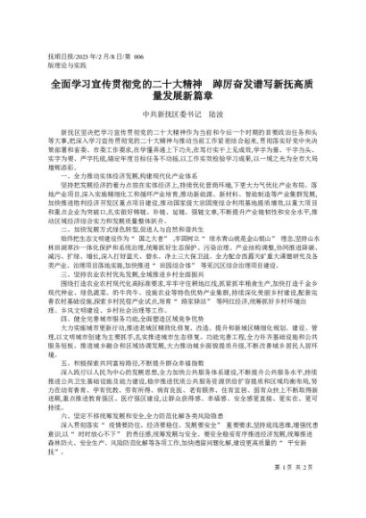 / 署名文章:2023.02.08中共新抚区委书记陆波:全面学习宣传贯彻党的二十大精神踔厉奋发谱写新抚高质量发展新篇章