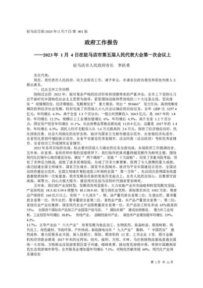 / 署名文章:2023.02.07驻马店市人民政府市长李跃勇:政府工作报告