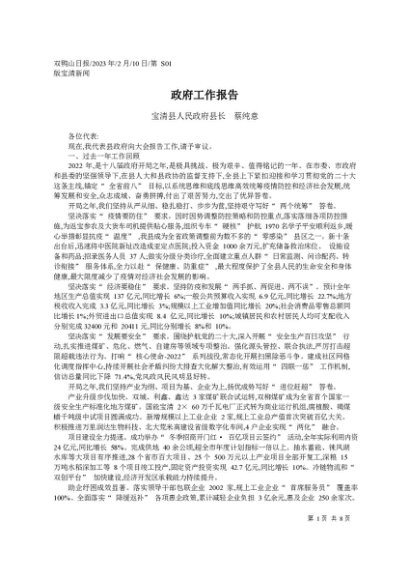 / 署名文章:2023.02.10宝清县人民政府县长蔡纯意:政府工作报告