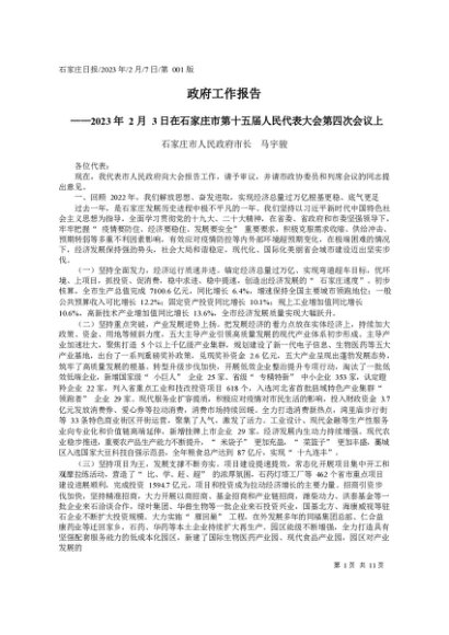 署名文章:2023.02.07石家庄市人民政府市长马宇骏:政府工作报告