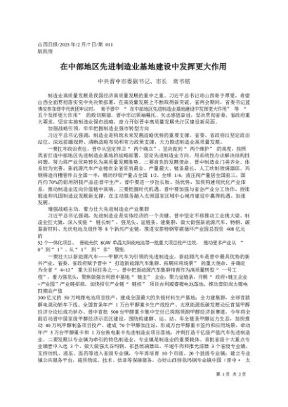 署名文章:2023.02.07中共晋中市委副书记、市长常书铭:在中部地区先进制造业基地建设中发挥更大作用