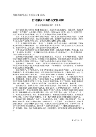 / 署名文章:2023.02.06四川省苍溪县委书记张世忠:打造梨乡大地特色文化品牌