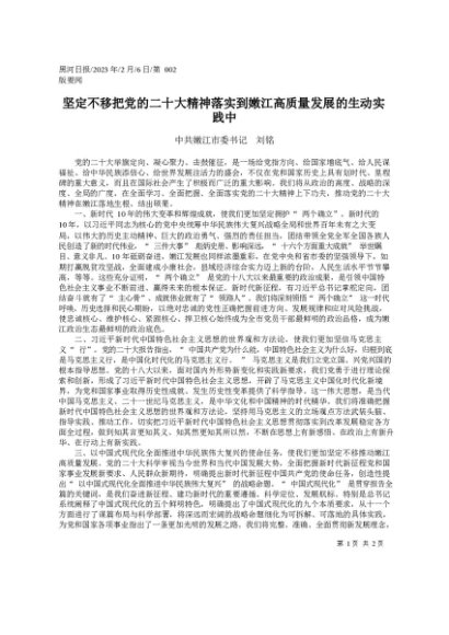 / 署名文章:2023.02.06中共嫩江市委书记刘铭:坚定不移把党的二十大精神落实到嫩江高质量发展的生动实践中