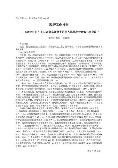 署名文章:2023.02.05肇庆市市长许晓雄:政府工作报告