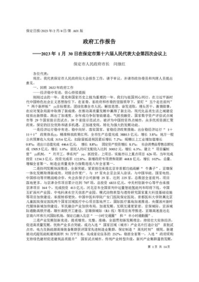 署名文章:2023.02.04保定市人民政府市长闫继红:政府工作报告