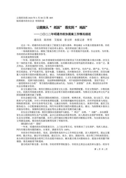 / 署名文章:2023.01.30通讯员陈祥彬艾祖斌曾文祥本报记者李芳:让提案从纸面落实到地面