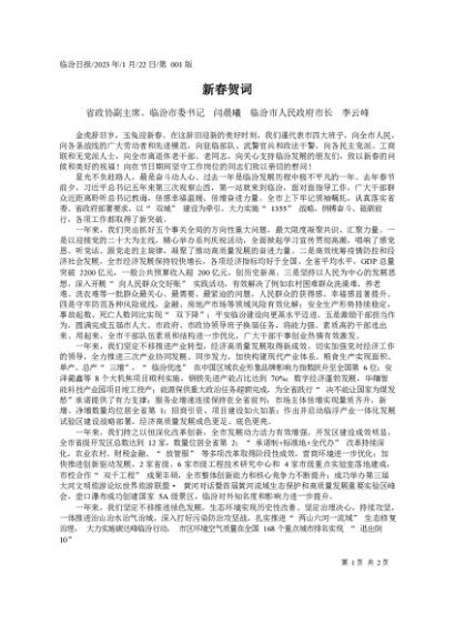 / 署名文章:2023.01.22省政协副主席、临汾市委书记闫晨曦临汾市人民政府市长李云峰:新春贺词