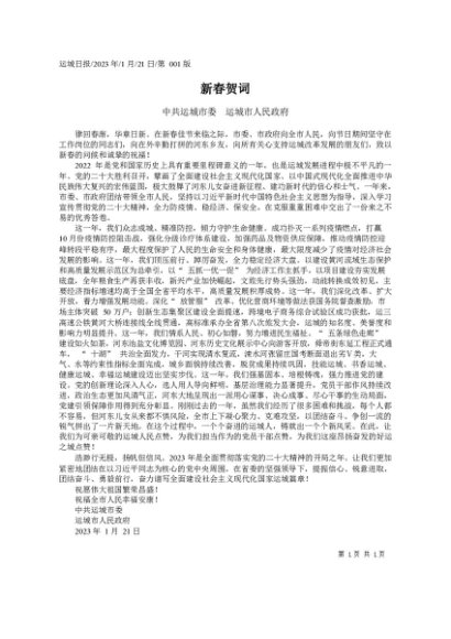 / 署名文章:2023.01.21中共运城市委运城市人民政府:新春贺词