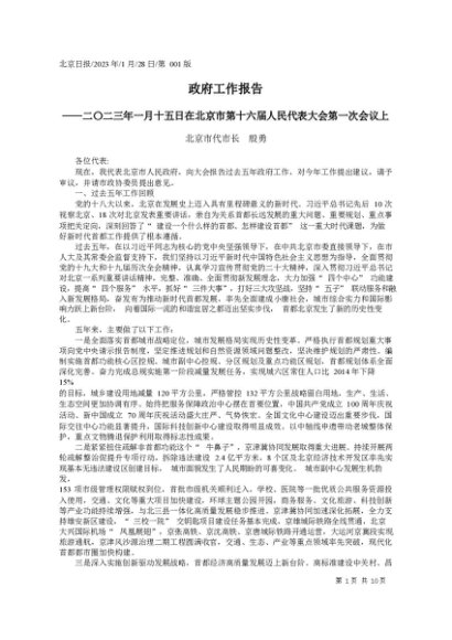/ 署名文章:2023.01.28北京市代市长殷勇:政府工作报告