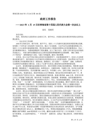 / 署名文章:2023.01.20省长吴晓军:政府工作报告