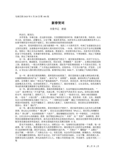 署名文章:2023.01.20中共乌海市委员会乌海市人民政府:慰问信