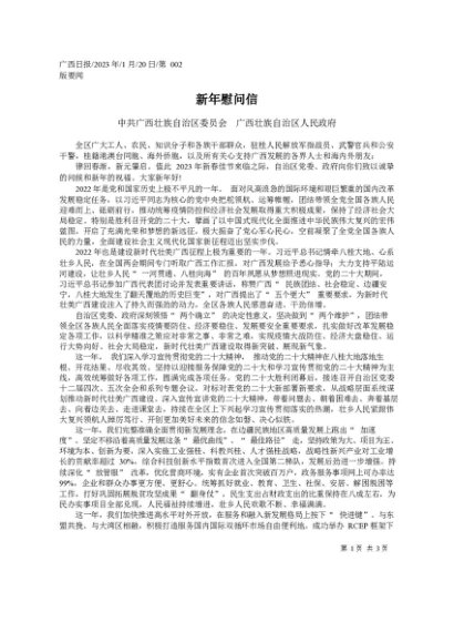署名文章:2023.01.20中共广西壮族自治区委员会广西壮族自治区人民政府:新年慰问信