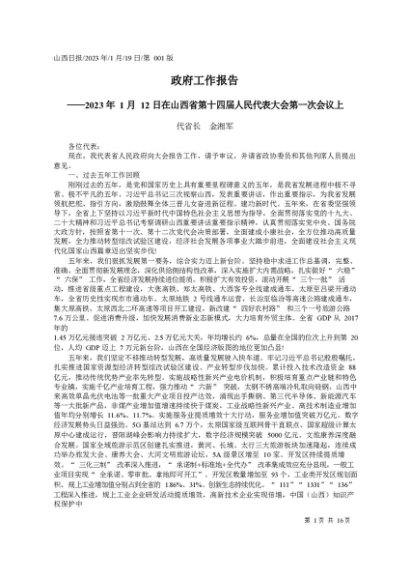 署名文章:2023.01.19陕西省代省长赵刚:政府工作报告