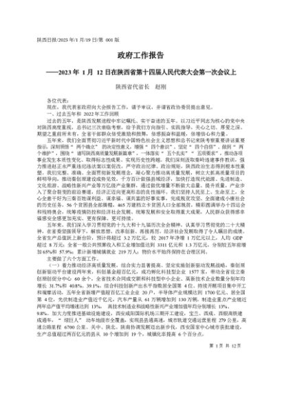 / 署名文章:2023.01.19陕西省代省长赵刚:政府工作报告